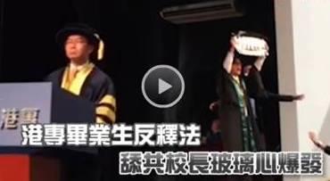 不過,正如我們今天所見到的:陳校長卻並沒有被這些流氓媒體所嚇倒,在“港專”今年的畢業典禮上,他再次斥責了不尊重國歌的學生。