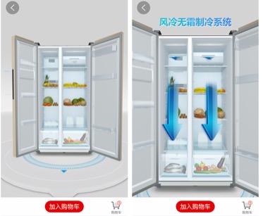 不僅如此,3D的展示模式為商品融入了更多豐富信息,像冰箱的製冷系統、食材的保鮮系統、冰箱容積都可在3D畫面中以動態效果表達出來,極大地豐富產品的表現形式,使原來只能通過文字和圖片來了解產品的方式得到了極大地改善。據透露,目前京東也在針對Google的ARCore和蘋果的ARkit進行開發,提升目前已有的AR購物體驗。