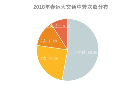 《報告》數據顯示,近50%受訪者在春運出行途中需經歷至少一次大交通的中轉。究其原因主要有兩點,一是我國城市化的發展,人員集中在一、二線城市,在春運這個有特殊意義的時間節點上流動趨勢趨同,造成了交通運力上局部供需不平衡;二是信息不對稱,對春運出行的大多數旅客來説,規劃回家路線時決策成本過高,要考慮價格、時間、舒適度、購票難度、中轉方法、出發時間等多個問題。