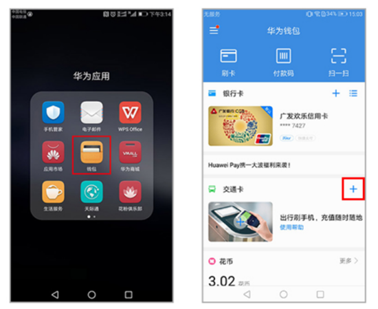 名額有限,小編建議大家提前get一下開卡方法。首先打開“華為錢包”APP,然後在錢包主界面的“交通卡”欄目點擊“+”按鈕,選擇需開通的城市交通卡,按提示完成開卡即可。