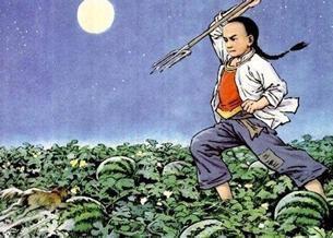 【《少年閏土》節選】深藍的天空中掛着一輪金黃的圓月,下面是海邊的沙地,都種着一望無際的碧綠的西瓜。其間有一個十一二歲的少年,項帶銀圈,手捏一柄鋼叉,向一匹猹盡力地刺去。那猹卻將身一扭,反從他的胯下逃走了。
