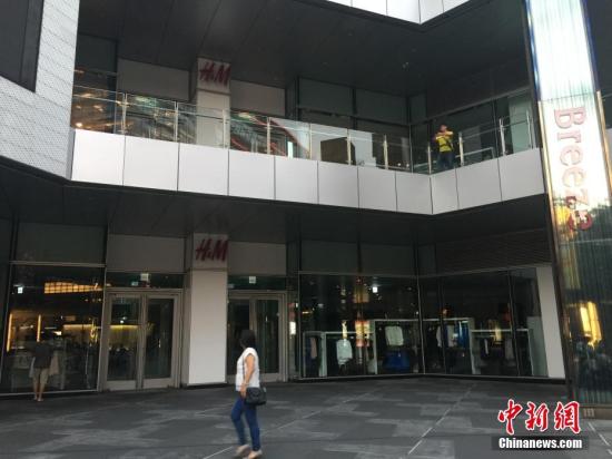資料圖:台北市最繁華的信義商圈的大型商場停電,室內一片漆黑,商場將顧客全部疏散。中新社記者 路梅 攝