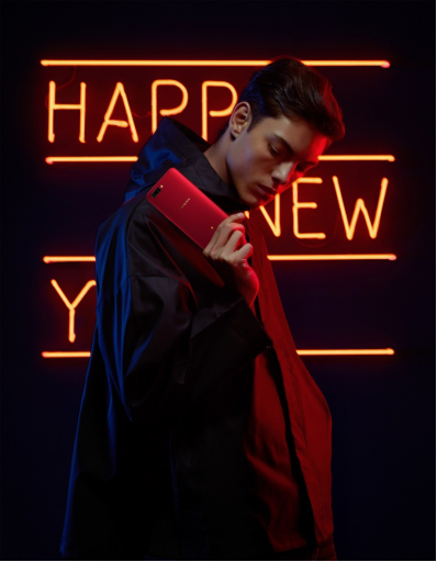 OPPO R11s星幕新年版整體採用經典的新年紅配色,而LOGO、鏡頭保護框等細節處則運用金色,喜慶中透露着高貴。