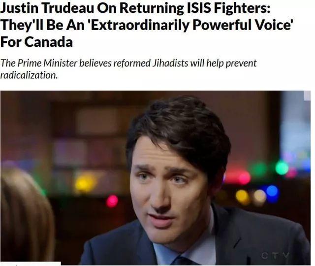 儘管如此,眼光獨到的特魯多還是堅持表示,雖然有一些國家正嚴厲控訴那些在全世界範圍內為ISIS征戰的極端分子,但是他認為,能夠回到自己家園的極端分子還是有機會被改造的。