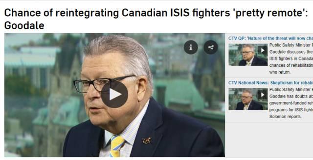 他的這一説法與加拿大公共安全部長古迪爾(Ralph Goodale)站在了對立面。最近,古迪爾在同一個節目中説,要徹底改變親歷過戰場的ISIS極端分子基本上是不可能的,扭轉這種暴力思想的可能性幾乎為零。
