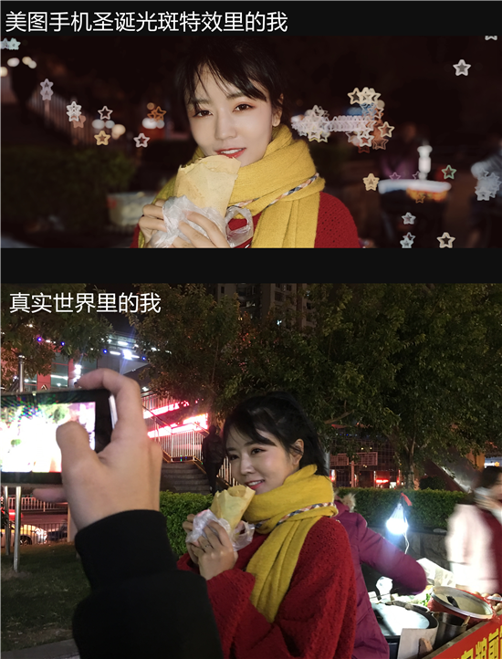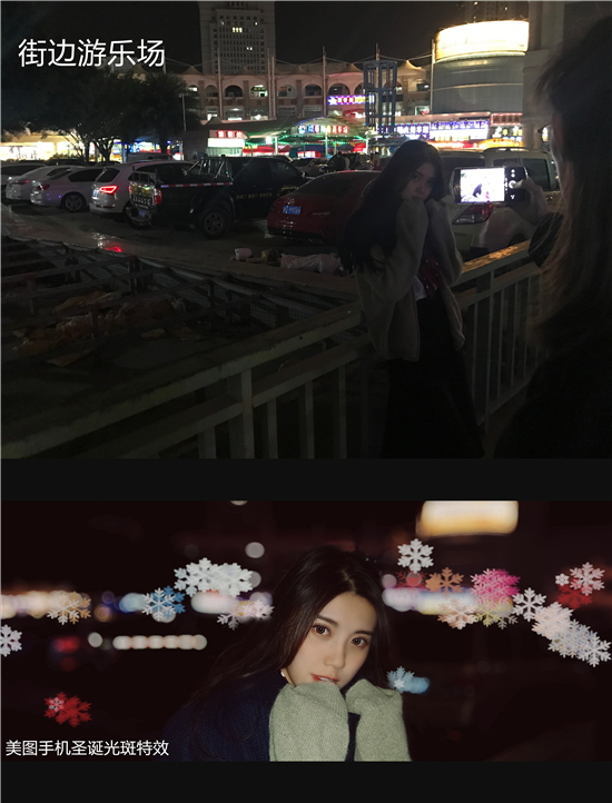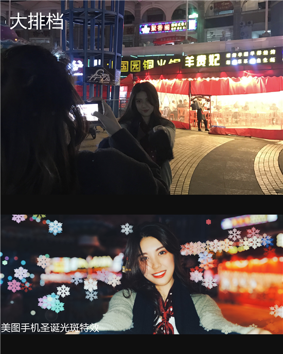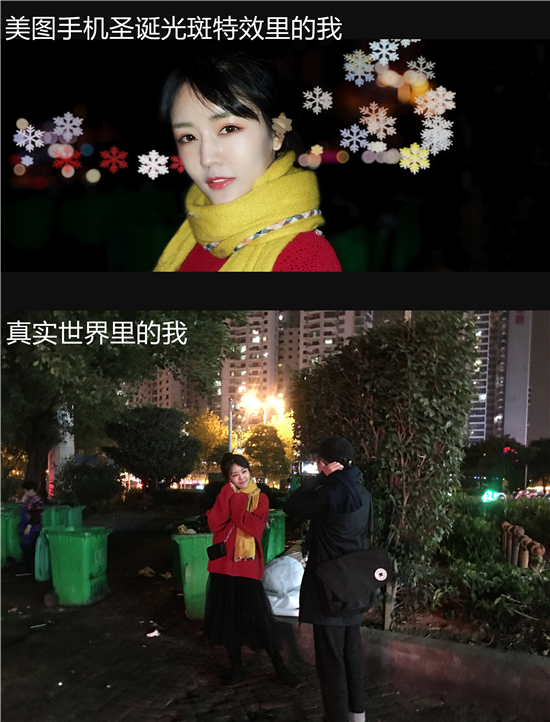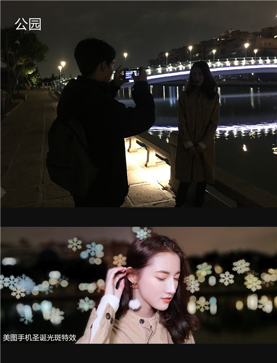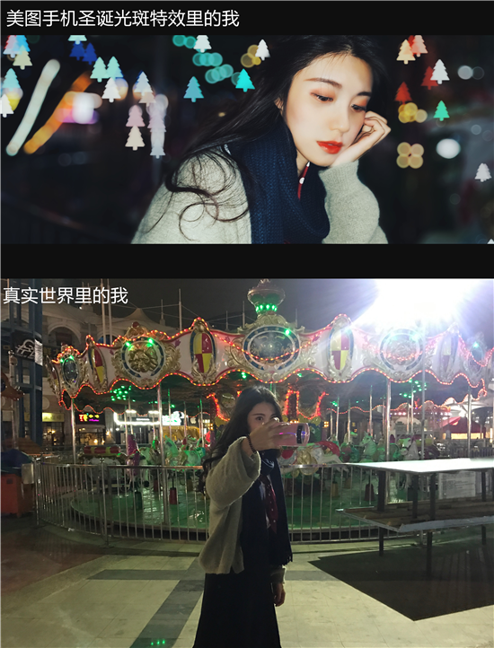 只要使用美圖手機的“電影人像模式”,在這個浪漫的聖誕節,就能讓你的照片飄滿雪花。