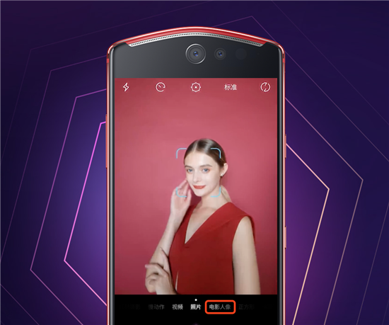 第二步,打開“電影人像模式”進行拍照。
