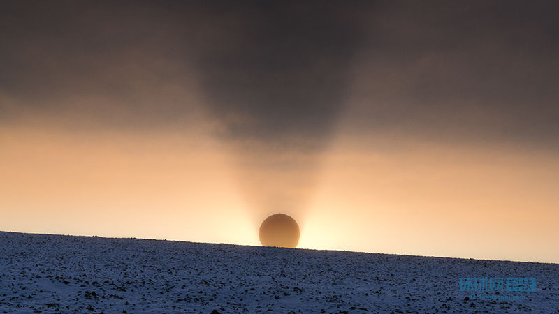 在挪威斯瓦爾巴特羣島,由於極低的太陽高度,一個碟形天線被照出輪廓。這個碟形天線負責從聯合極地衞星上下載數據。在十一月發射的聯合極地衞星是美國新一批氣象衞星中的第一個。