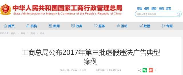 日前,國家工商總局對外公佈了2017年第三批虛假違法廣告典型案例。