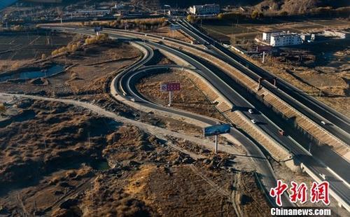 中國國家高速4219線澤當至貢嘎機場段12月8日下午3時試運營通車。圖為拉薩至貢嘎機場高速。中新社記者 何蓬磊 攝