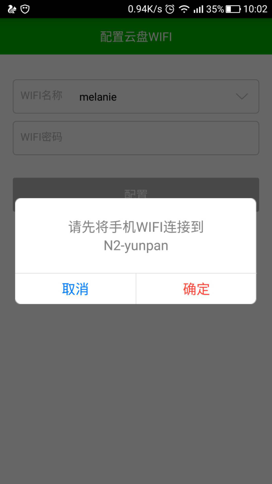 首次開機還需要配置雲盤WIFI,首先連接N2-yunpan熱點,然後通過APP選擇或者輸入家中正在使用的WIFI和密碼,完成配置。