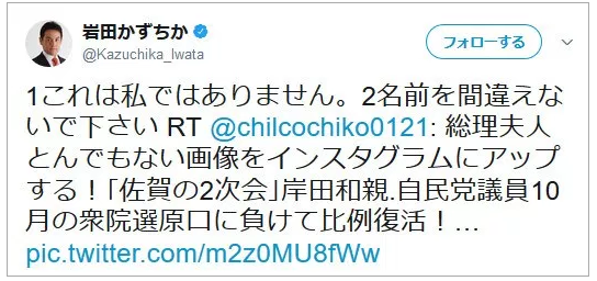 日媒稱,2017年1月上傳的照片如今才迅速擴散,令人十分不解。由於照片在網上瘋狂傳閲,有男性因此躺槍。例如,日本自民黨眾議院議員巖田和親(44歲)。不過他已經在推特上堅決否認。(編譯/海外網 鞏浩)