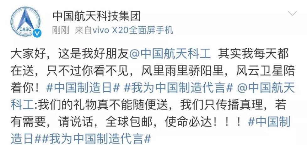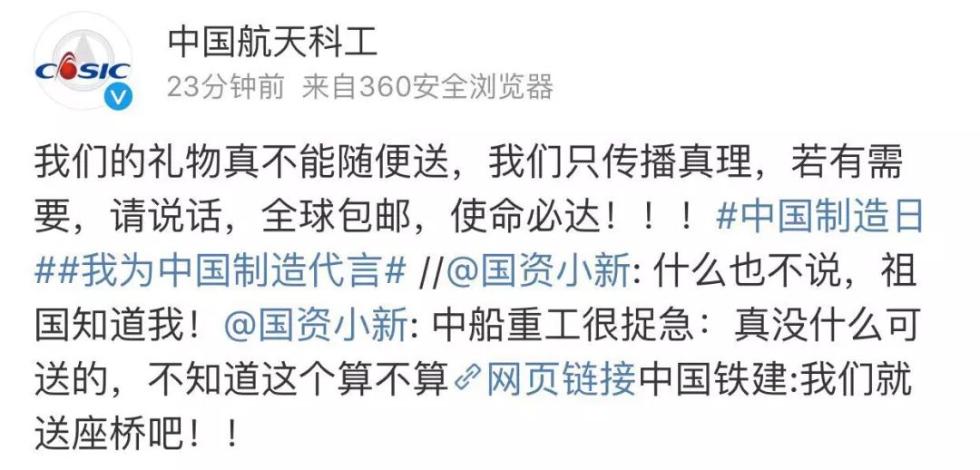 看到這張圖後,@中國航天科工 也秀出了自己的禮物