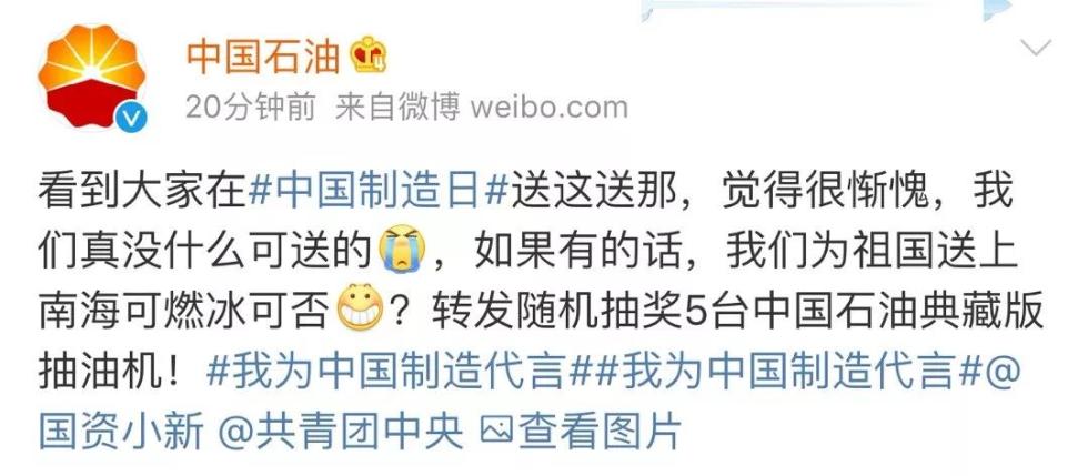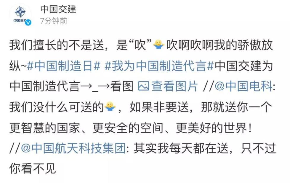 活動開始後,除了上述的企業,眾多國企藍 V及微博大V也紛紛轉發,前來送“東西”。