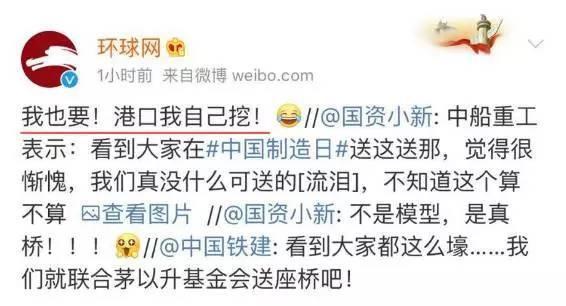 在微博上各種送東西:送手機、家電和汽車,還有人送橋、送挖泥船、送坦克、送航母!