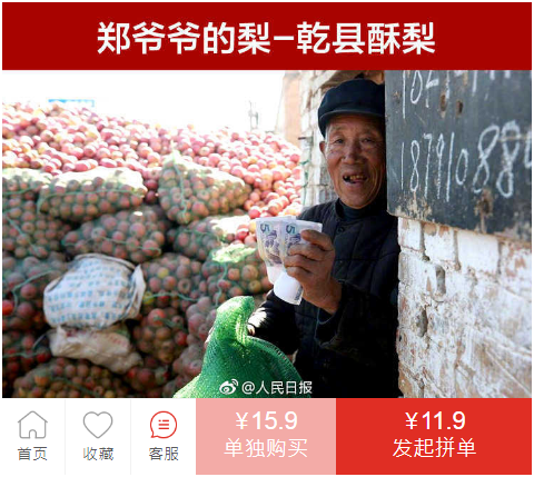 社交電商的靈活機動性在扶貧助農工作中展現出極大的效能。不久前,人民日報微博報道了陝西乾縣貧困老人鄭爺爺的遭遇,74歲的鄭爺爺,家裏320斤的落果梨只賣了10塊錢,平均3分錢一斤,老人非常心痛。拼多多團隊得知後輾轉聯繫上鄭爺爺,在拼多多和當地電商運營團隊的努力下,鄭爺爺家的梨已經在拼多多平台開賣,銷量持續增長。
