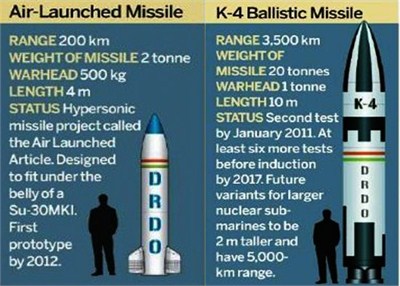 而更令人擔憂的是K-4潛射彈道導彈(SLBM)的試射失敗。這種導彈是印度“三位一體”核計劃的重要一環,將使印度有能力從水下發射導彈攻擊數千公里外的戰略目標。在12月17日進行的試驗中,該導彈未能從水下浮筒中成功發射,最終試驗以失敗告終。這種導彈的射程超過3500公里,計劃裝備印度國產核潛艇,作為第二次核打擊的主要手段。消息人士稱,K-4型導彈在測試過程中始終沒有被激活,最終發射命令發出後電池耗盡,導彈留在浮筒中。更糟糕的是,DRDO的科學家甚至無法從發射失敗後的試驗浮筒中取回導彈,這也引發對該項目的安全擔憂。