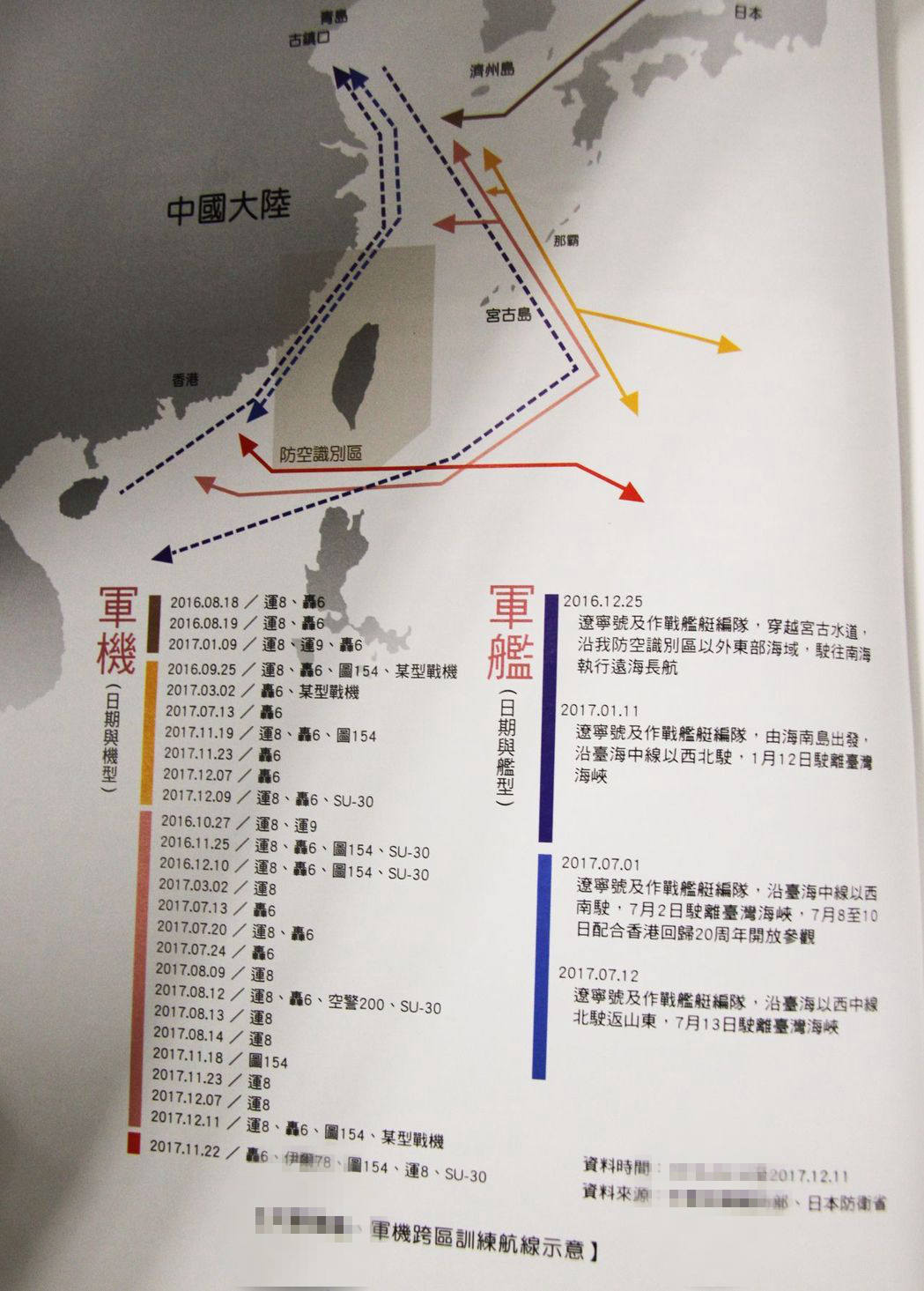 該報告書中也把解放軍機艦從2016年8月到今年11月底遠海長訓的次數列出,並畫出每一次的航線圖,共有23次軍機近台,及2次航艦近台紀錄。報告還稱,中國大陸常態化執行東海警巡、南海戰巡,具有跨島鏈作戰能力。