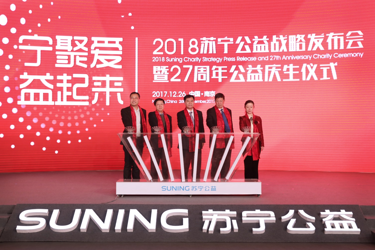 10萬隻冰糖橙,僅是2017年蘇寧公益扶貧的一個縮影。在當日召開的2018蘇寧公益戰略發佈會&27週年公益慶生儀式中,張近東表示,2018年,蘇寧擬將行業首創的精準扶貧實訓店擴展到至少100個貧困縣,併成立專項扶貧基金,全面保障精準扶貧項目的規模化落地、效益化發展。同時,蘇寧將聯合江蘇省慈善總會、中國扶貧基金會、南京愛德基金會、上海真愛夢想基金會等合作伙伴,繼續開展善行者、夢想大篷車、足球1+1等公益活動。
