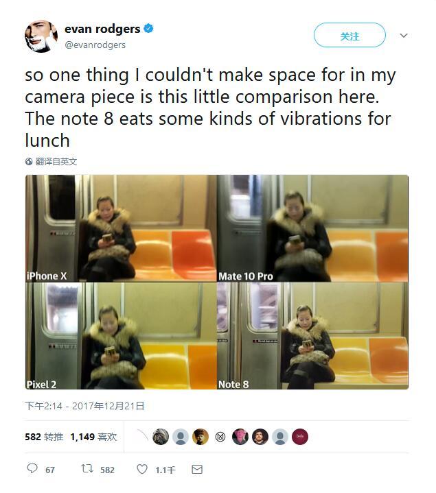 在Evan Rodgers上傳的一段視頻中,主要記錄了四款旗艦在户外走路時候的抖動效果;而第二段視頻中則是記錄了坐在地鐵裏面的拍攝的,對比更加明顯。
