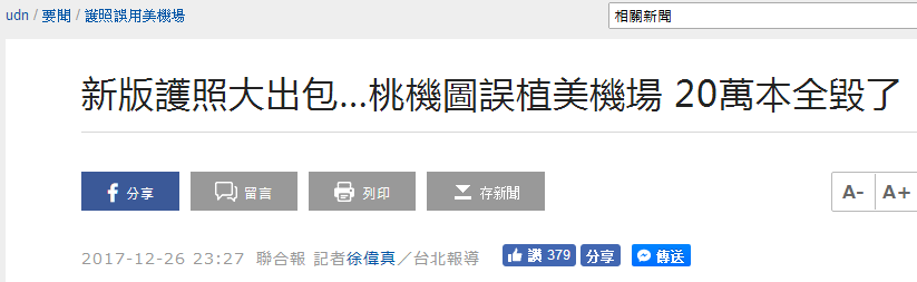出洋相!台新版“護照”誤植美國機場 台媒:20萬本全毀了