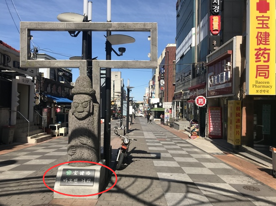 報道稱,2011年9月,中國寶健集團組織會獎旅遊,率領1萬1000名員工前往濟州。於是韓國旅遊發展局決定把濟州商業中心的這條路改名為“寶健路”,以此來紀念兩國友誼。隨後的幾年間,街道兩側商店和餐廳都充滿中國元素,吸引遊客前來消費,成為中國遊客到濟州的必經之地。