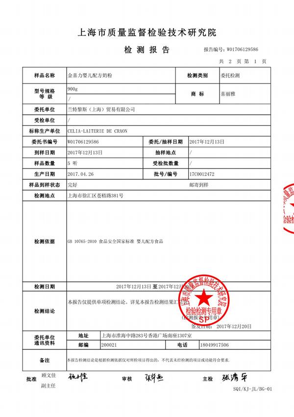蘭特黎斯中國方面回覆稱,根據上海質檢院公佈的檢測報告,樣本中沙門氏菌結果為陰性,判定樣品為合格。上海市質量監督檢驗技術研究院28日向澎湃新聞證實,蘭特黎斯中國提供的檢測報告屬實。