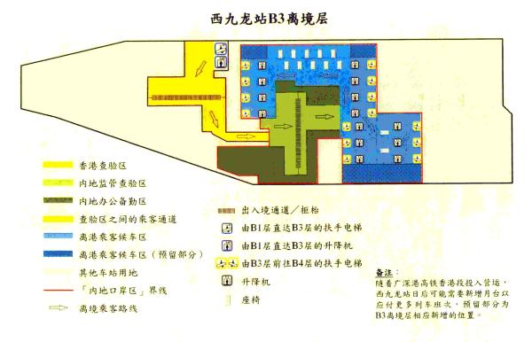 西九龍站口岸分為香港口岸區和內地口岸區。香港口岸區由香港特區依據特區法律設立和管轄,實行過境限制區管理。內地口岸區由內地根據本合作安排和內地法律設立和管轄,實行口岸管理制度。