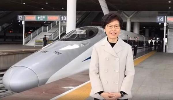 稍早前,林鄭月娥休假期間在深圳北站和桂林北站站台介紹了高鐵的便利性,以及“一地兩檢”的必要性。 視頻截圖