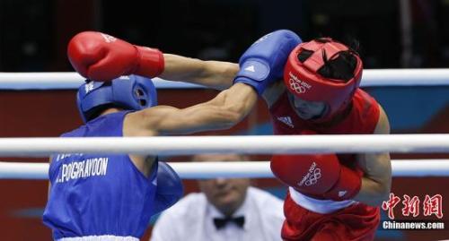 資料圖:倫敦奧運會男子拳擊49公斤級決賽,鄒市明擊敗泰國老將龐普里亞楊,實現奧運會的衞冕。 記者 盛佳鵬 攝