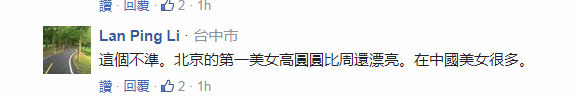對於此次美媒的評選結果,在台灣綠營媒體的留言區下,也有不少島內網友感到非常滑稽,有網友戲稱,“評委該吃葉黃素了”、“我還是覺得自己女兒最美”、“這個不準,北京的第一美女高圓圓比周還漂亮,在中國美女很多”,還有網友質疑“沒有競爭對手嗎”的時候被另一網友神回覆,“有,蔡飯桶(蔡英文)”。
