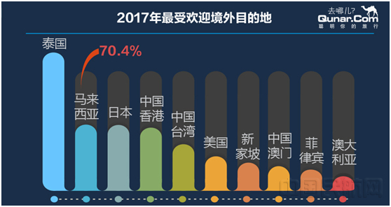 今年最受國人喜愛的出境遊目的地都是哪兒?去哪兒機票數據顯示:泰國、馬來西亞、日本成為2017年最受歡迎的境外目的地。日本也以其良好的服務、匯率的優勢,今年首次進入這一排名的前三。