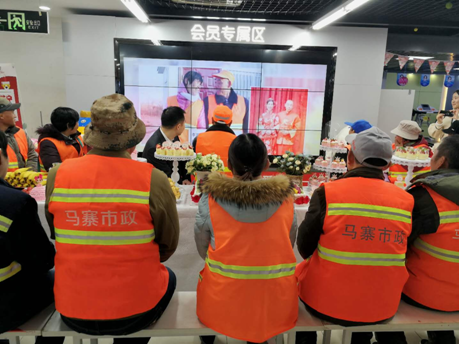 12月24日,位於鄭州市蘇寧易購德化雲店還未到營業時間,店內卻擠滿了前來參加“婚禮”的人,現場顯得温馨又熱鬧。在會員專屬區,大屏幕滾動播放着婚紗照,現場的工作人員為環衞工人們備好了蛋糕、鮮花、水果,一起慶祝他們的“婚禮”。張師傅激動地説,感謝蘇寧易購,實現了自己和老伴多年來的心願。