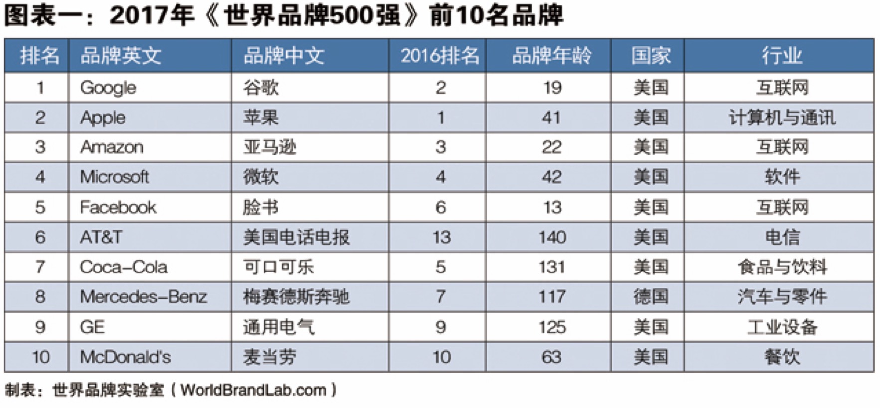 世界品牌實驗室發佈2017年世界品牌500強:中國僅37個品牌入榜