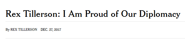 27日,美國務卿蒂勒森在《紐約時報》上發表了一篇名為《我為美國外交驕傲》的文章,他在文章中再向巴基斯坦施壓,“巴基斯坦必須表現出與美國合作的意願,防止阿富汗成為恐怖分子的避風港”,他還提到,特朗普政府將為此推出新的“南亞戰略”。
