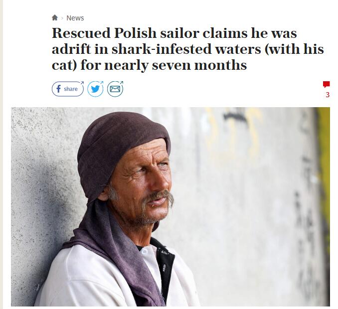 印度洋漂流7個月 波蘭水手帶着小貓全靠“中國麪條”苦撐