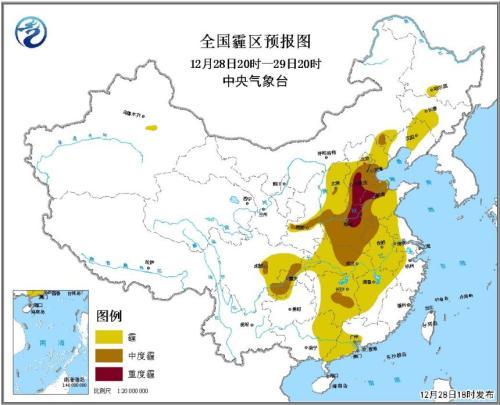 28日夜間至29日,京津冀及周邊區域中南部大氣擴散條件較差,將有輕至中度霾,河北中南部、河南北部、山東西部等地的部分地區將有重度霾;29日早晨至上午,北京東南部、天津、河北東部、山東西部、部分地區有大霧,局地有能見度低於500米的濃霧。30日上午,受冷空氣影響,霧、霾自北向南逐漸減弱或消散。