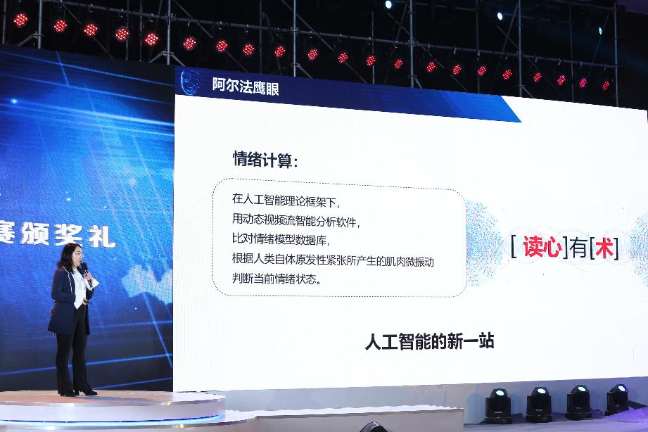 “‘阿爾法鷹眼’是可以拔網線的。”創始人王立英博士在大賽中談道,“和傳統人工智能識別技術不同,我們只檢測情緒,不需要數據庫比對,而且,3到5秒鐘就可以給出判斷結果。在安防領域,即使作案後的犯罪分子整容,也能被‘阿爾法鷹眼’通過監測其不可控制的生理反應——肌肉微振動篩選出來。對情緒和認知的研究還可以建立基於EQ的大數據,實現更廣闊的應用,拓展到疾病篩查、金融風控等領域。”
