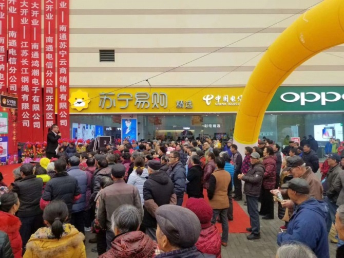 作為覆蓋社區生活最後一公里的蘇寧小店,在2018年將開出1500家。29日,蘇寧小店在南京4店同開,分別為蘇寧易購商茂店、湯山易購店、大廠長衝街店、徐莊員工公寓店。