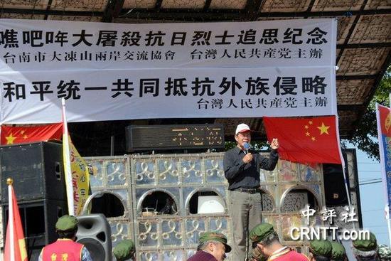 盧朝財在台南玉井紀念抗日事件的追思活動上致詞。(圖源:中評社)