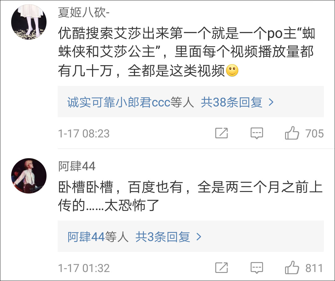 對此,不少網友非常着急,微博網友@萬非賢建議,視頻平台不能“簡簡單單的鎖定關鍵詞搜索,應當儘可能徹底刪除相關頻道/視頻及其他類似視頻。建議大家集中使用“elsagate”和“Elsa類兒童惡意視頻現象”兩個標籤,集中力量儘快引起更大關注。