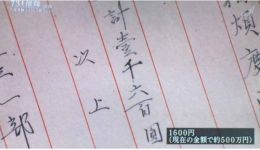這些本應治病救人的醫生淪為殺人的劊子手,接受日本政府的鉅額援助。日本文部省和東京大學的往返文件顯示,該校曾收到來自731部隊的“特殊費用”1600日元(摺合現在的500萬日元,約合28萬元人民幣)。