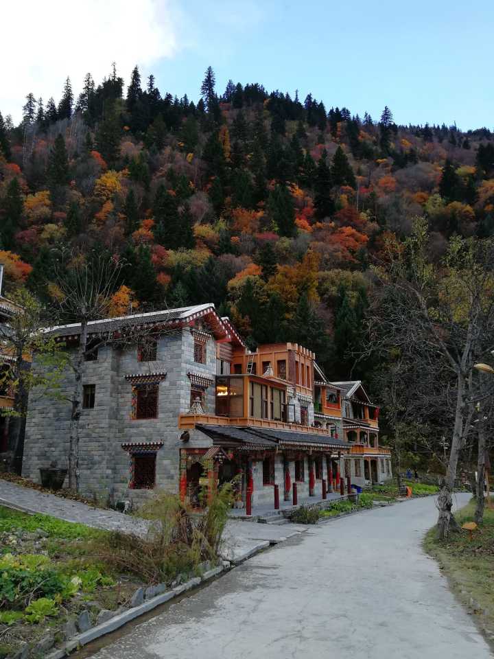 四川奶子溝彩林區羊絨哈德村,五顏六色的彩林點綴着秋天。