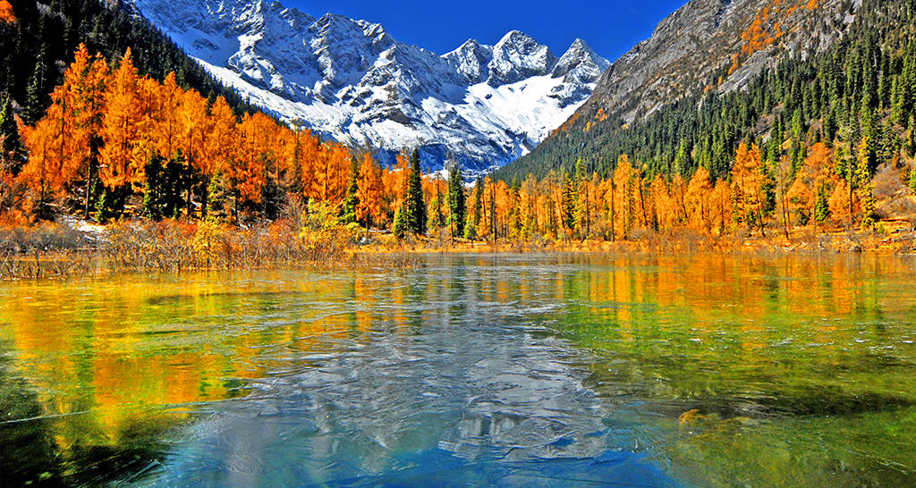 四川理縣畢棚溝可以説是中國式的班夫公園,雪山,森林,冰湖完全融為一體,在秋天的紅葉彩林和冬天的霧凇冰湖,都相映成趣,仙境一樣的風景。溝內有波光粼粼的磐羊湖與龍王海,被特殊藻類寄生而形成的紅石灘,非常出片。畢棚溝周圍還有桃坪羌寨、甘堡藏寨,讓你盡情領略川西的藏羌文化。還有古爾溝温泉放鬆身心。