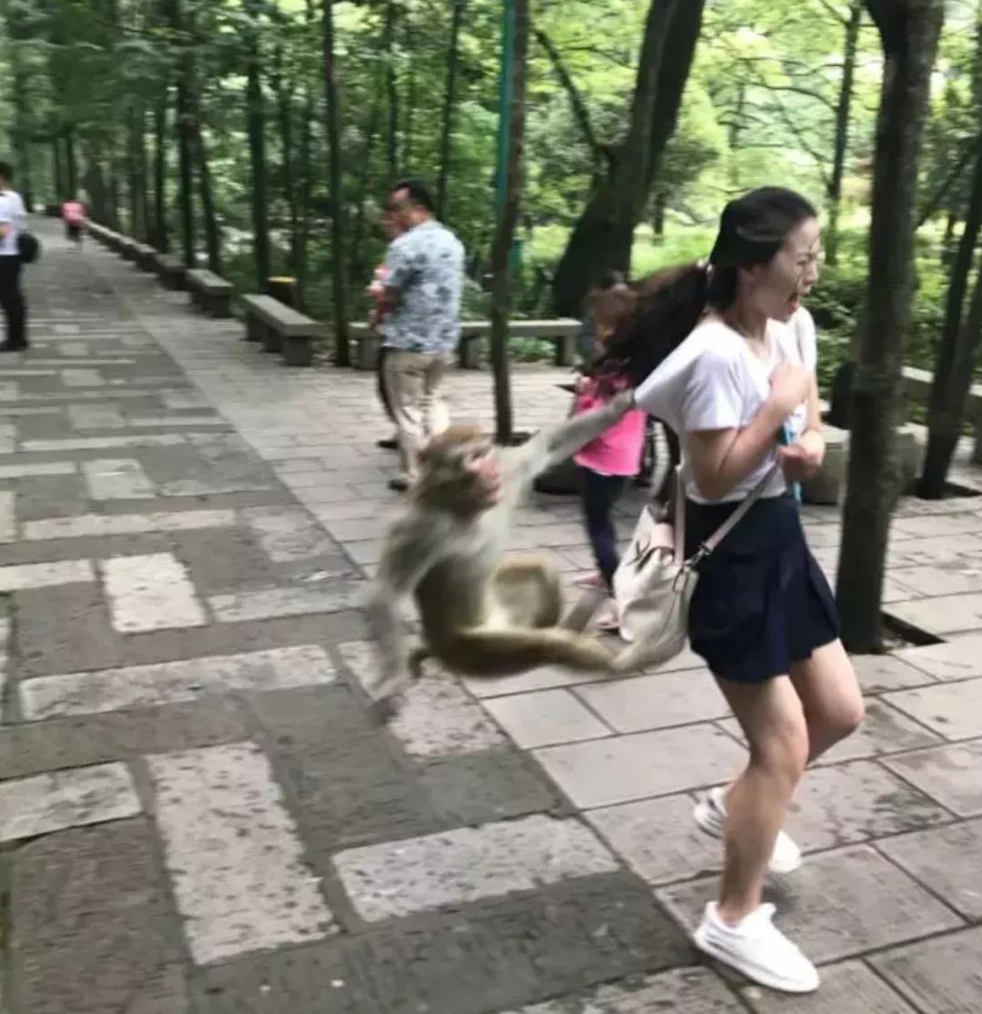 但剛走近就發現猴子沒有我想象中的可愛,甚至還帶有攻擊性,嚇得我轉身就逃,結果男朋友就這樣給我拍下來了……