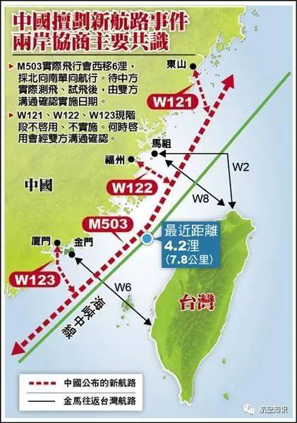 台灣方面認為會帶來金門馬祖飛行安全隱患的W121 W122 W123航線