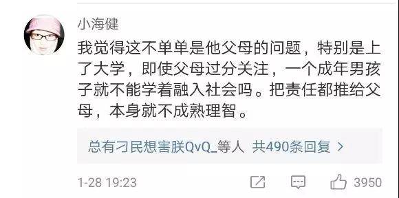 “國內就不説了,國外是完全陌生的環境,我們介紹一個朋友,在必要時候也好有個照管,我們錯了嗎?這是要控制他嗎?”母親老劉説,“同時,我們也不瞭解你的學科,也不瞭解對方是不是專業的人,你不認同,覺得對方在幫助你的過程中有錯,你自己改過來不就好了嗎?”