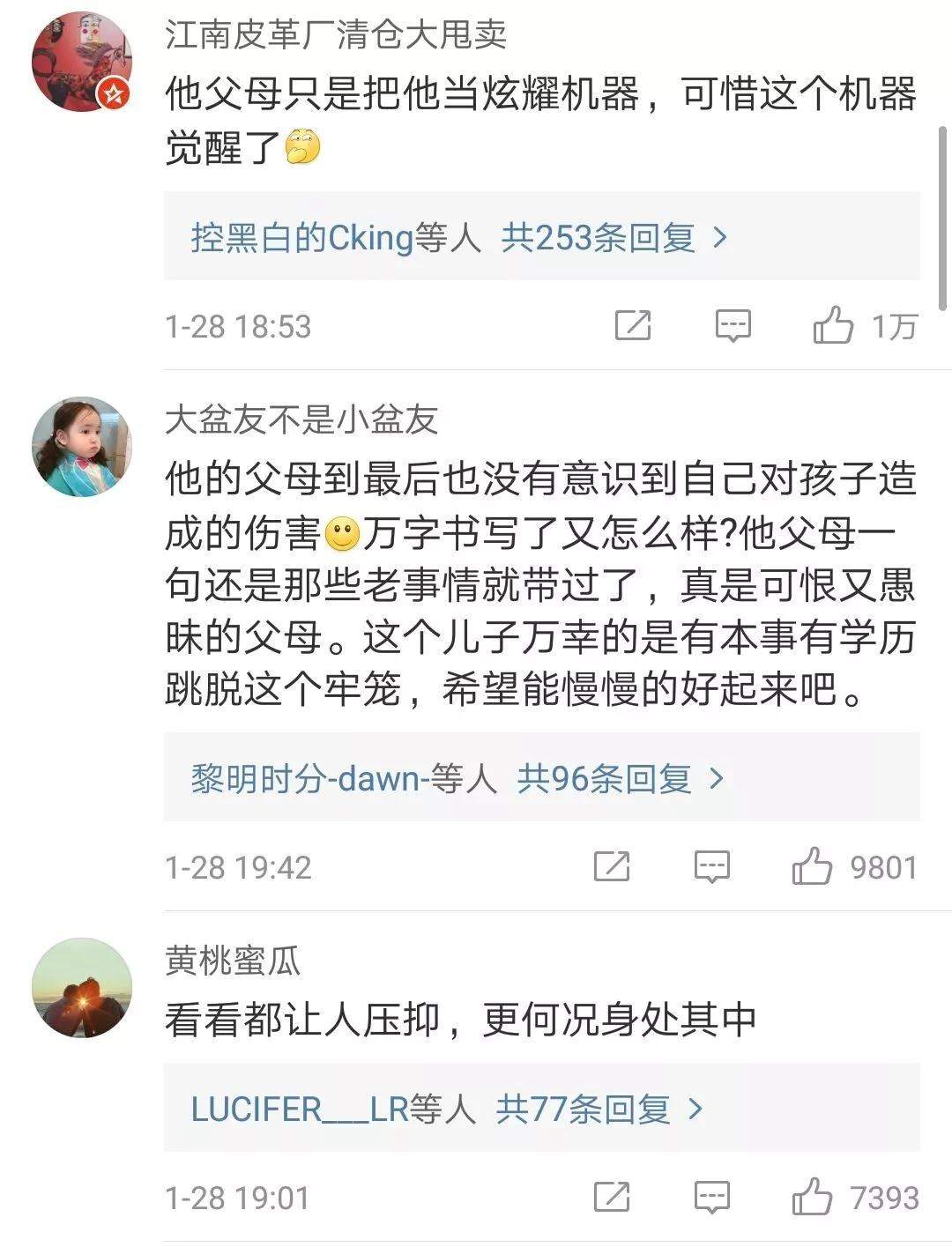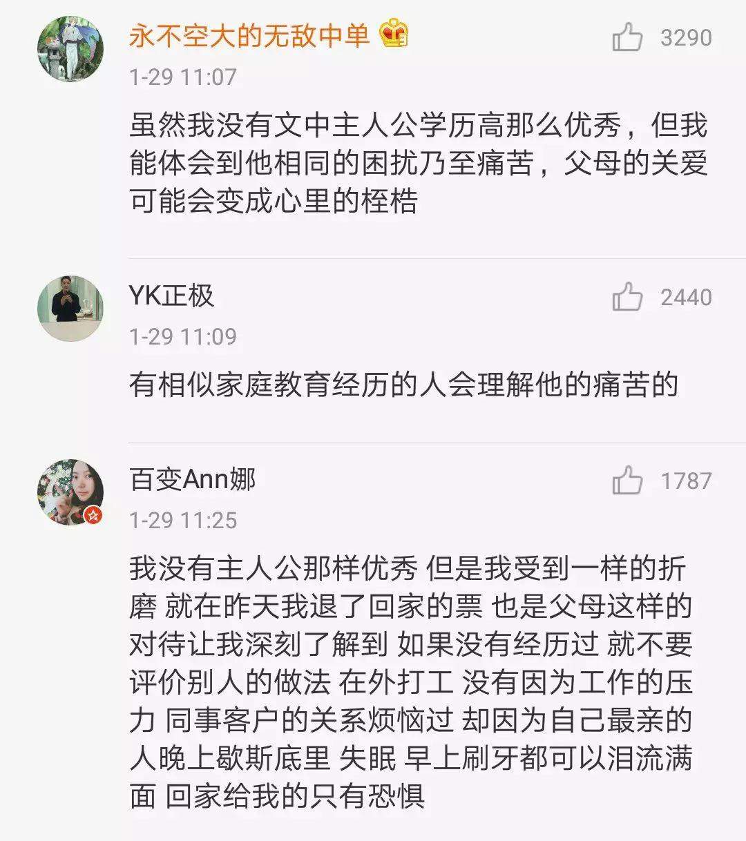 中青報1月30日消息,曾經的高考理科狀元,本科北大的留美研究生王猛(化名)12年不回家過春節,6年前,他與父母決裂,拉黑了父母所有的聯繫方式。此事經媒體報道後引發熱議,其中一句網友評論獲得2萬多的贊。如今,雙方再發聲,兒子要回家了?