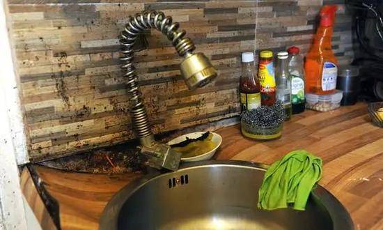 他們租住的房屋環境十分惡劣。廚房裏的水槽坍塌在腐朽的木質地板上,櫥櫃裏到處都是黑色的黴菌;客廳天花板還漏水,每當下雨時,雨水就會從天花板縫隙流下來。