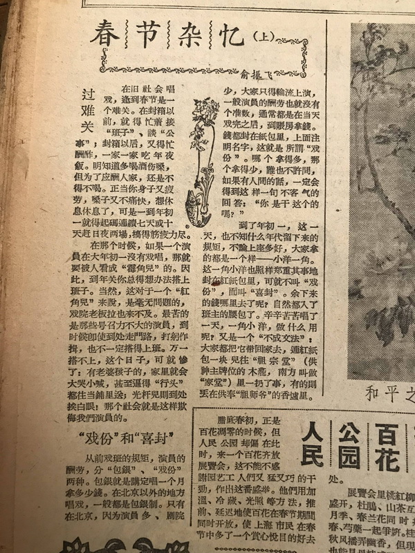 俞振飛在1959年2月8日《新民晚報》上的文章中回憶解放前的戲曲演員生活